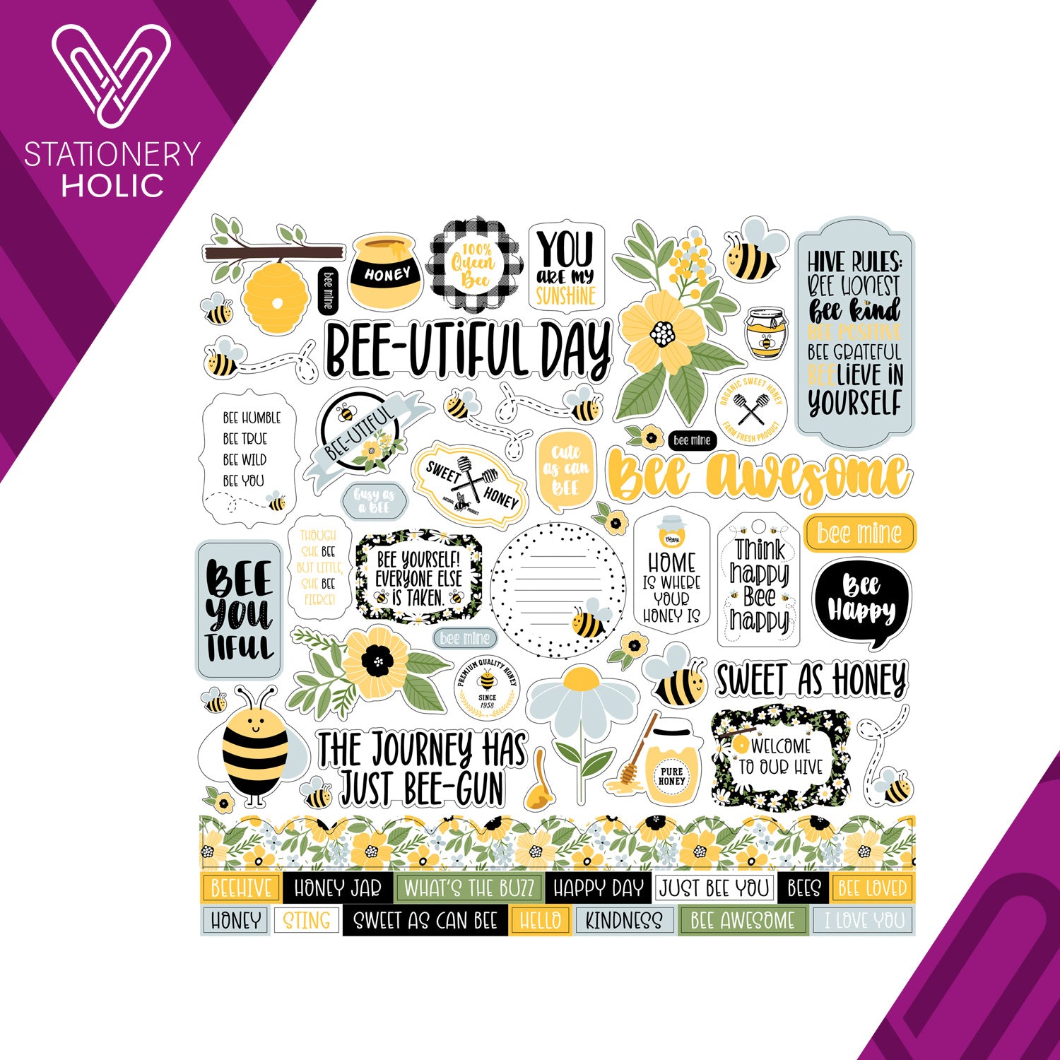 Echo Park - Hoja de Stickers 12 x 12 - Bee Happy