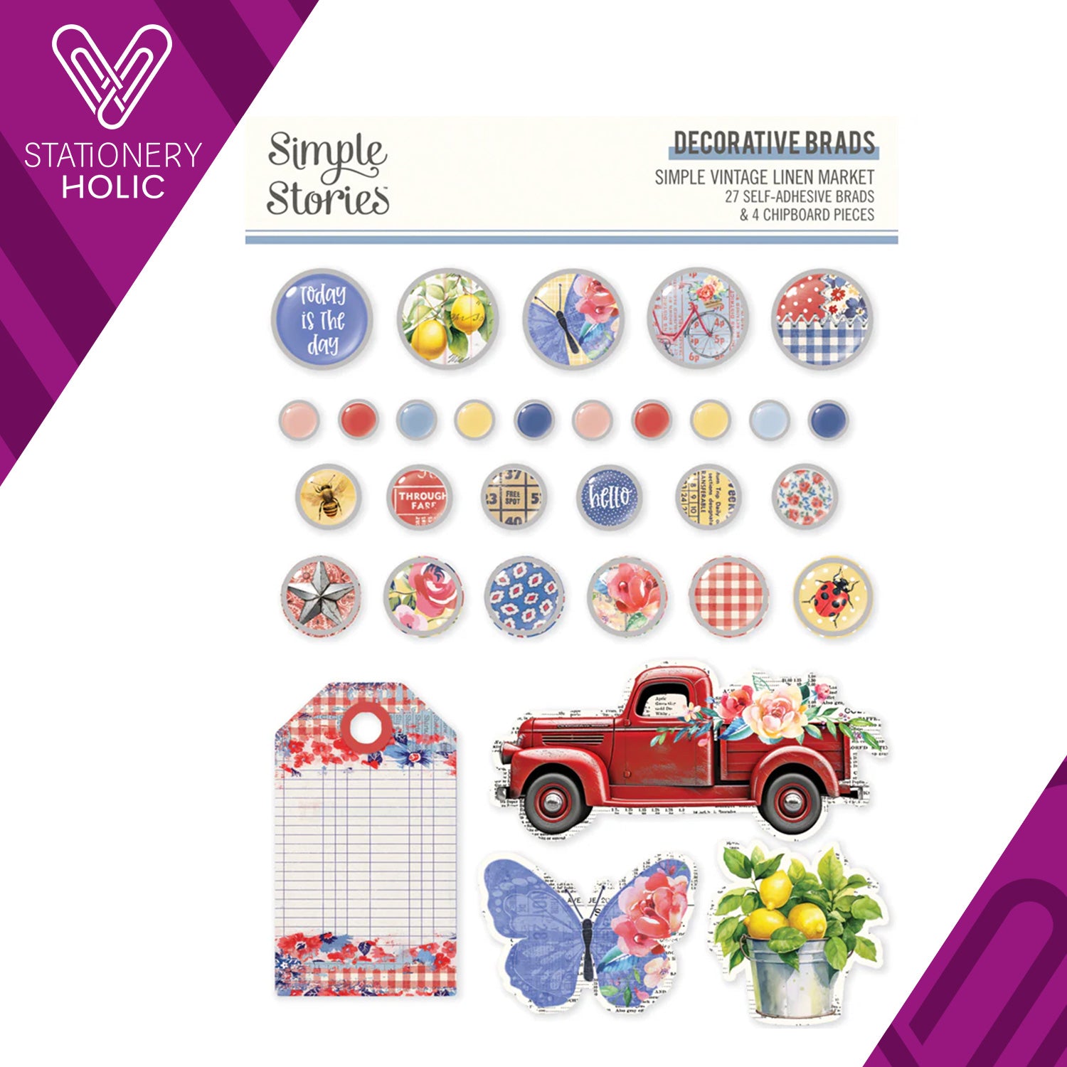 Simple Stories - Decorative Brads - Linen Market