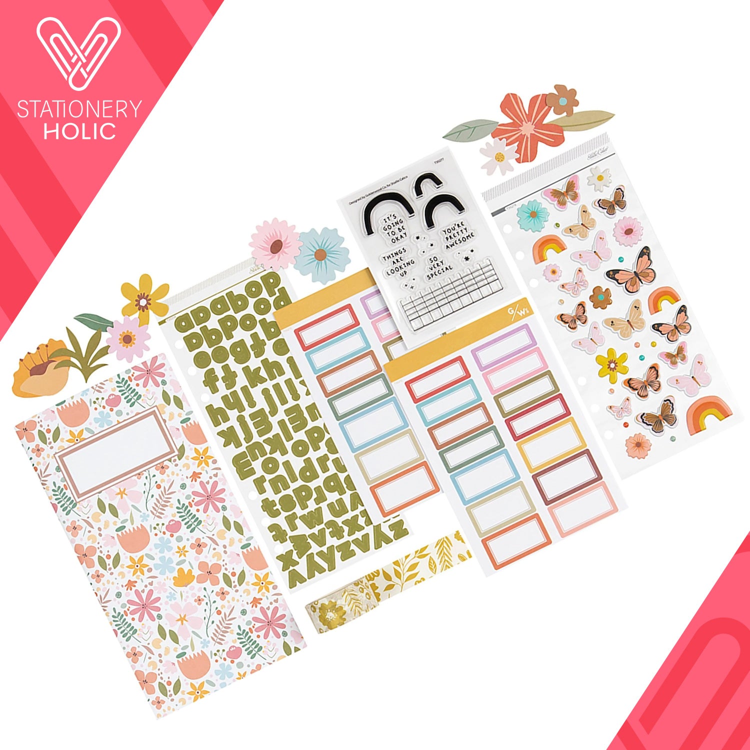 Kit de libreta, stickers, sellos y mas.